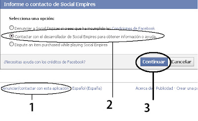 Después tipeamos donde dice Contactar con el desarrollador del Social Empires para obtener información o ayuda